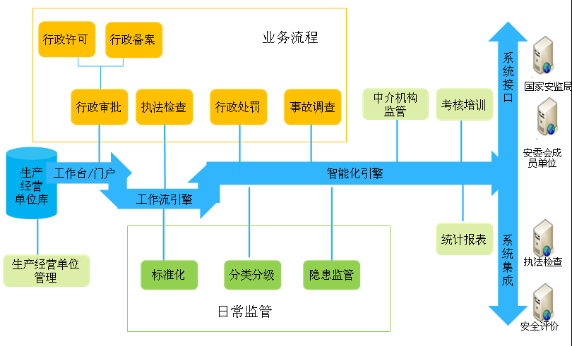 依托國家和地方政務(wù)信息資源,建成覆蓋全省各級(jí)安全生產(chǎn)監(jiān)管部門、各級(jí)安委會(huì)成員單位之間互聯(lián)互通的信息網(wǎng)絡(luò)平臺(tái)和安全,本系統(tǒng)將建立統(tǒng)一的企業(yè)信息服務(wù)交互出口,向企業(yè)采集相關(guān)信息,并提供安監(jiān)信息服務(wù),實(shí)現(xiàn)隱患排查治理、監(jiān)管監(jiān)察、應(yīng)急救援等業(yè)務(wù)工作的數(shù)字化、流程化、網(wǎng)絡(luò)化和智能化管理。建立資源共享、應(yīng)急協(xié)同機(jī)制,實(shí)現(xiàn)安監(jiān)系統(tǒng)與安委會(huì)成員單位之間的資源共建共享,信息互通,技術(shù)相互支持、展開聯(lián)合應(yīng)急行動(dòng)、共同應(yīng)急處置,從而進(jìn)一步提高應(yīng)急反應(yīng)速度和應(yīng)急處置能力,有效降低和減少重特大安全生產(chǎn)事故和其他突發(fā)事件帶來的影響和損失。