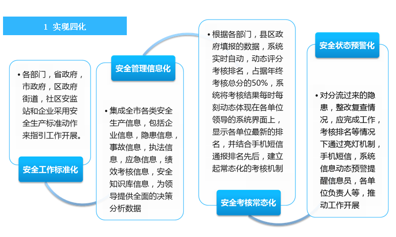4 績效成績通報(bào):將各市區(qū),各部門的安全生產(chǎn)工作績效考核結(jié)果予以通報(bào),并發(fā)送給指定人員。