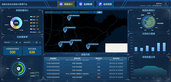 國家應急安全裝備云管理平臺集設備分布、裝備統(tǒng)計、視頻集成于一體,做到全局把控、設備監(jiān)測、全生命周期綜合使用可視化操作。當遇到突發(fā)事件時,能在線直觀的分析并高效的了解到設備實時狀態(tài)。 國家應急安全裝備云管理平臺通過與服務器后臺平臺進行信息傳輸,實現(xiàn)線上查看設備信息的操作、瀏覽和統(tǒng)計。工作人員可以通過國家應急安全裝備云管理平臺了解各個設備的基本信息,掌握現(xiàn)場設備設備的工作狀態(tài)、運行情況、監(jiān)測氣體、視頻、電量情況等信息,從而快速實現(xiàn)了裝備與人、裝備與云、人與云互通互信的過程,同時解決了以前對設備信息不了解、現(xiàn)場情況無法實時查看、效率低、難題。在提高工作效率的同時增加了物聯(lián)網(wǎng)的準確性和先進性,解決了以往信息傳遞難、無電子版信息儲存、無統(tǒng)計分析等問題。 | |