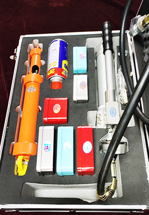 注入式堵漏工具由手動高壓泵、 注膠槍及一組注膠接頭組成,可以在不停工、不停車和不動用電焊火種的條件下,采用內部注射密封劑料,表面粘接、鋼帶捆扎等工藝手段加以
