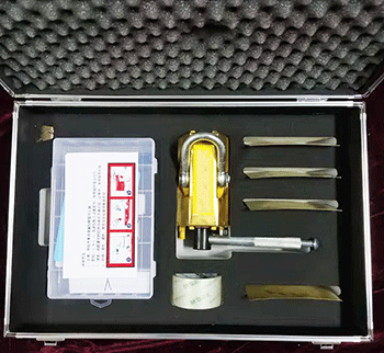 表面采用防爆鋁青銅材質(zhì),內(nèi)部利用超強永磁體對鋼鐵容器的吸附力,通過操縱手柄控制工作面上的磁通量,吸住泄漏的有磁金屬表面,達(dá)到工具和泄漏本體之間的壓合和釋放。仿形壓片,是在墊在磁壓堵漏器本體與泄漏口之間的薄板,用它可彌補二者之間的空隙,減小磁阻,改善堵漏膠的分布狀態(tài)??焖俣侣┠z調(diào)均勻后堆向泄漏口,同時扳動通磁手柄,可阻止內(nèi)壓液體流出,讓膠體有時間凝固,數(shù)分鐘內(nèi)膠固化后,堵漏即告完成。堵漏膠和密封劑能承受水、油、液化氣、30%硫酸、30%鹽酸、氫氧化鈉、飽和氯化鈉溶液的侵蝕。