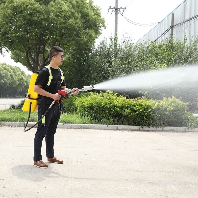 本產(chǎn)品是電機(jī)驅(qū)動(dòng)水泵產(chǎn)生一定壓力的水流,通過對(duì)水流壓力和流量的控制后,再通過可產(chǎn)生細(xì)水霧的專用噴槍噴出進(jìn)行滅火的裝置。改裝置設(shè)置了限壓限流、缺水保護(hù)、欠壓提醒等多種保護(hù)。系統(tǒng)沒有壓力容器。徹底解決了使用壓力容器的安全隱患。