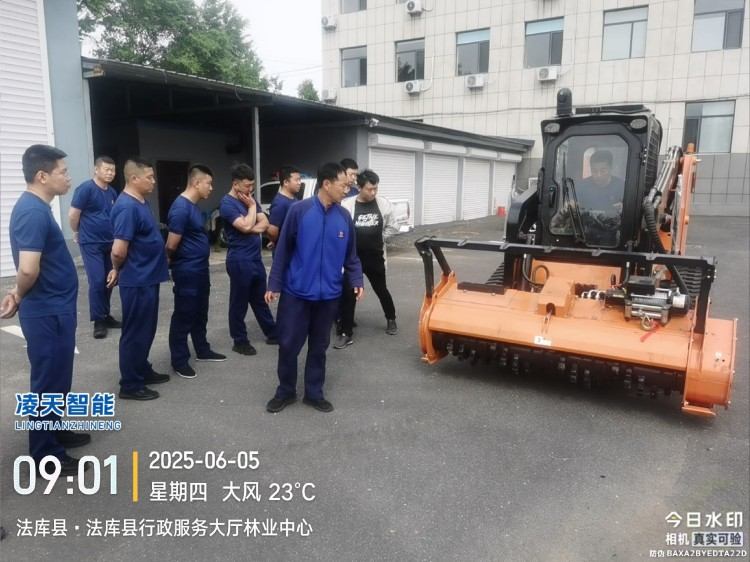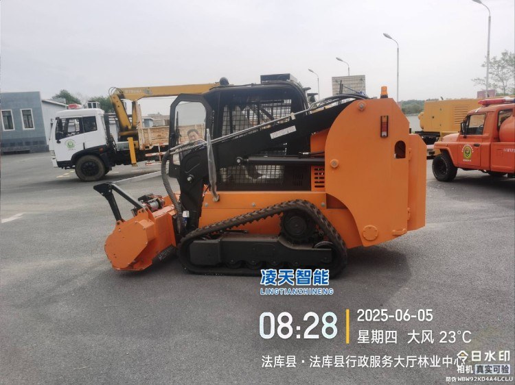 森林隔離帶開辟車是由隔離帶開辟機模塊、大型鈍刀式切削模塊、重型林木抓斗、鏟斗、快換機構、履帶式行走機構、臂架舉升裝置、駕駛室、電氣液壓系統(tǒng)和無線遙控器組成。設備應采用雙三角形履帶式行走機構,具備建造防火隔離帶的能力,可粉碎樹 木、灌木、草等各種可燃性植物,能在茂密的樹林、灌木林、草原中迅速開辟防火隔離帶??煞鬯榈臉淠局睆?/span>≥ 250mm,連續(xù)粉碎時可粉碎的樹木直徑≥80mm,可粉碎的樹木、灌木和草的高度沒有限制。在山地林區(qū)開辟防火隔離帶、維護防火通道、開辟臨時救援通道、建立安全島、輔助清理火場、開設生土隔離帶等應急救援任務。