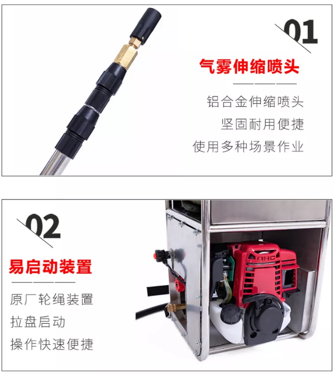 不銹鋼架,便于攜行。泵軸水平布置,減少震動 水泵泵體為柱塞液壓隔膜泵。允許砂石顆粒通過,對水質(zhì)要求低,對發(fā)動機功率損耗小。 泵組可在橫向、縱向傾斜達到25°時正常工作。 水帶直徑40mm,爆破壓力18MPa,表層滌綸長絲,內(nèi)襯進口橡膠,高壓森林接口連接。 水泵配備的動力裝置為強制風(fēng)冷四沖程汽油機。