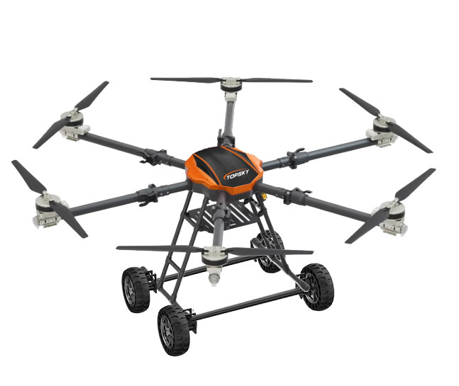 本陸空兩棲無(wú)人機(jī)平臺(tái)為北京凌天智能裝備集團(tuán)研發(fā)的集多旋翼無(wú)人機(jī)與陸地行駛系統(tǒng)于一體的陸空兩棲無(wú)人機(jī)平臺(tái)(多用途偵檢無(wú)人機(jī)),采用六旋翼機(jī)身設(shè)計(jì),配備可快拆的陸地行駛系統(tǒng),能夠空中飛行與地面行駛兩種模式間自主或受控切換,既能空中飛行,又可陸地行駛。載重大,續(xù)航長(zhǎng),并且機(jī)體折疊標(biāo)準(zhǔn)化負(fù)載接口、集成航電系統(tǒng)、核心傳感器雙冗余備份系統(tǒng)。搭載長(zhǎng)距離實(shí)時(shí)通訊鏈路,實(shí)時(shí)傳輸現(xiàn)場(chǎng)環(huán)境數(shù)據(jù)及無(wú)人機(jī)飛行數(shù)據(jù)。配備智能控制系統(tǒng),可滿足多種場(chǎng)景和多種方式的作業(yè)需求。本陸空兩棲無(wú)人機(jī)平臺(tái)可適應(yīng)復(fù)雜多變的環(huán)境與任務(wù)需求,極大地?cái)U(kuò)展了傳統(tǒng)無(wú)人機(jī)的作業(yè)邊界??纱钶d多種載荷,如:四光吊艙、氣體檢測(cè)儀、喊話器,滿足環(huán)境偵查、應(yīng)急教援、安全疏導(dǎo)、氣體檢測(cè)等不同場(chǎng)景的行業(yè)應(yīng)用。