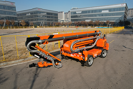 進行滅火消防炮噴射作業(yè)時最大高度可達20.5米,最大水平延伸可達11米,實現凌空對火場的高空壓制噴射需求。