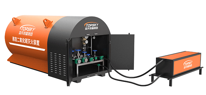 采用液態(tài)二氧化碳為滅火劑,運輸至井下火區(qū)近附,經自增壓調控系統(tǒng)實現罐內穩(wěn)壓,并通過遠距離輸送管路將液體從罐內向密閉火區(qū)噴射,利用其急速膨脹氣化和吸熱效率高的物理特性,可實現惰性降氧,吸熱降溫,吸附阻化等功能,從而可快速進行井下煤層自燃火災的預防與撲滅等