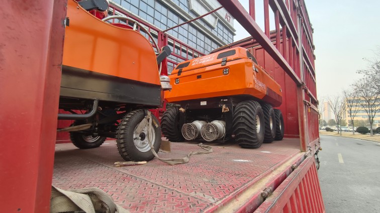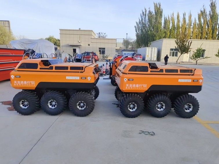 采用6×6輪式底盤,液壓驅(qū)動(dòng),裝有真空輪胎,另加配水下推進(jìn)器,增加水中行進(jìn)效率,水陸兩棲,可全地形行駛;