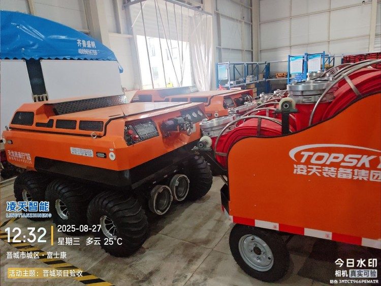 供排水機(jī)器人配有大口徑水帶收放車,采用電動(dòng)快速鋪設(shè)系統(tǒng),操作簡(jiǎn)單,實(shí)用性強(qiáng)等特點(diǎn),解決了人力收放水帶的不便利性,增加了救援時(shí)間。