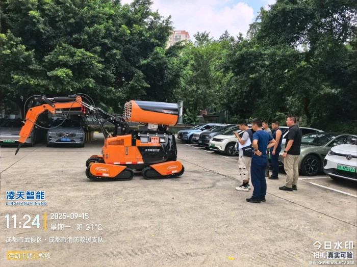采用柴油發(fā)動機為動力源,使用液壓傳動系統(tǒng)驅(qū)動,具有極強的綜合救援和滅火性能,主要針對于石油化工類火災(zāi)、煙花爆竹類火災(zāi)、倉庫不明物火災(zāi)以及具有易燃易爆、有毒、缺氧、濃煙、有倒塌、強輻射等特殊危險的救援場所,救援人員不便于接近事故現(xiàn)場的災(zāi)害處理,可有效減少災(zāi)害處置處置過程中可能造成的救援人員的生命威脅。也可以遙控機器人進行建筑拆除、混凝土鉆切、隧道開挖、搶險救援、本產(chǎn)品具備遠(yuǎn)程操控、全景顯示等功能,同時具備超高的越野性能;集成式液壓剎車裝置,可有效駐車剎車,防止整機溜車。