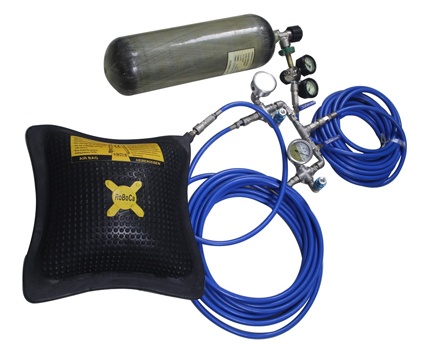 高壓氣瓶通過壓力調(diào)節(jié)器(減壓閥)的減壓,將25MPa的高壓空氣降低到0.8MPa低壓空氣,0.8MPa低壓空氣通過雙向控制器連接兩個(gè)氣墊或兩個(gè)氣囊,可完成兩組起重操作??刂破饔呻p向控制器和單向控制器兩種類型,顧名思義,雙向控制器可連接兩個(gè)氣墊或兩個(gè)氣囊,單向控制器可連接1個(gè)氣墊或1個(gè)氣囊。氣囊與氣墊的區(qū)別為,氣囊起重力小,起重高度高,氣墊剛好相反。