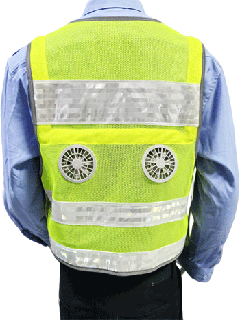 溫控警用背心(低溫型)為前開襟馬甲式樣,開襟用拉鏈拉開,前后身分別具有兩道橫向反光帶;前身胸部左右分別綴釘胸微、警號錦絲搭扣帶絨面、對講機(jī)袢、前后身兩側(cè)用錦絲搭扣及銅制四合扣連接,針對不同腰圍三檔調(diào)節(jié)肥瘦;可根據(jù)不同身高調(diào)節(jié)長短
