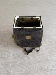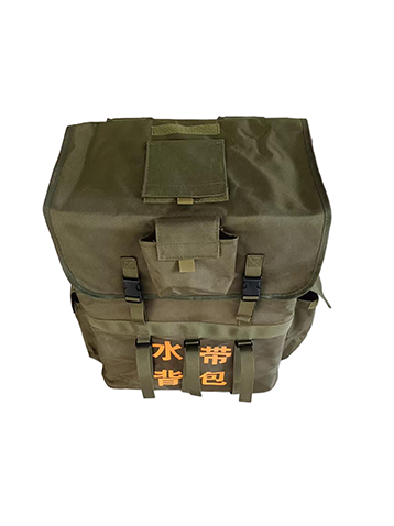 用于背負(fù)運輸及鋪設(shè)消防水帶,鋪設(shè)水帶時,水帶出口端要求相對固定或單兵手持,水帶背包背負(fù)人員向前走動時,水帶自然滑出,實現(xiàn)水帶鋪設(shè)。