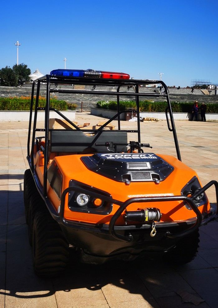 在復雜惡劣的地形條件和自然環(huán)境下,水陸兩棲全地形車可以讓搜救隊員和攜帶的救援裝備快速到達救援現(xiàn)場,減少徒步帶來提供消耗,完成最后一公里最好五分鐘緊急救援任務。水陸兩棲全地形車可配備點到絞盤、救援擔架組件、探照燈、警示燈、警報器、脫鉤、破拆工具等裝備, 給救援團隊提供救援保障,更安全的解救傷員和疏散群眾。