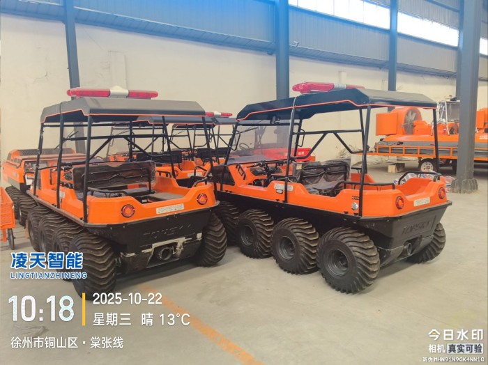 針對(duì)水災(zāi)頻發(fā)的地區(qū),水域救援任務(wù)必不可少。但往往洪澇災(zāi)害、城市內(nèi)澇往往伴隨著惡劣的天氣和崎嶇的地形,沖鋒舟需要多次搭載不同交通工具并數(shù)次轉(zhuǎn)移,水陸兩棲全地形車可以輕松通過水淹、泥濘、沼澤等環(huán)境,無需人力搬運(yùn),實(shí)現(xiàn)陸地駕駛和水中行走自由切換,以最快的時(shí)效抵達(dá)現(xiàn)場實(shí)施救援。