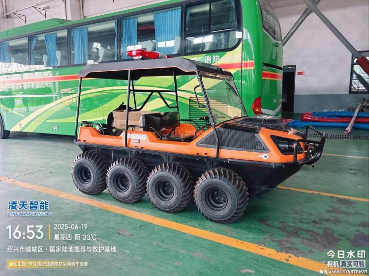 在復雜惡劣的地形條件和自然環(huán)境下,水陸兩棲全地形車可以讓搜救隊員和攜帶的救援裝備快速到達救援現(xiàn)場,減少徒步帶來提供消耗,完成最后一公里最好五分鐘緊急救援任務。水陸兩棲全地形車可配備點到絞盤、救援擔架組件、探照燈、警示燈、警報器、脫鉤、破拆工具等裝備, 給救援團隊提供救援保障,更安全的解救傷員和疏散群眾。