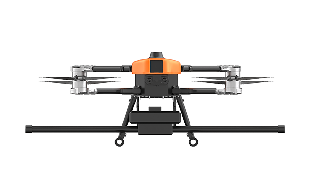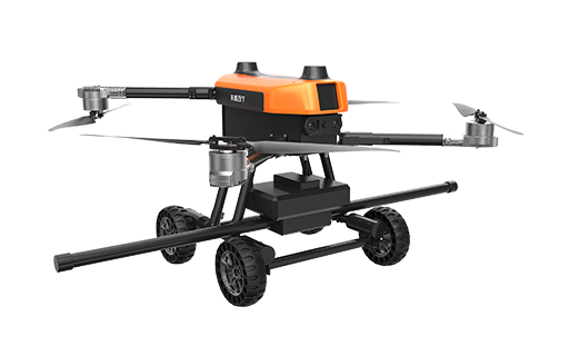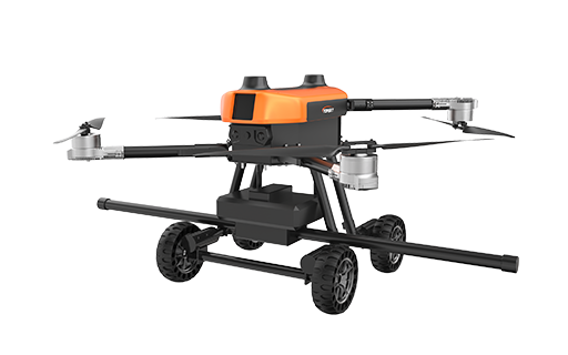 本無人機(jī)為北京凌天智能裝備集團(tuán)研發(fā)的陸空兩棲航磁探測無人機(jī),采用四旋翼機(jī)身設(shè)計(jì),載重大,續(xù)航長,并且機(jī)體折疊標(biāo)準(zhǔn)化負(fù)載接口。同時(shí),該無人機(jī)具備陸空兩棲功能,可以在地面行駛,行走系統(tǒng)可快拆。