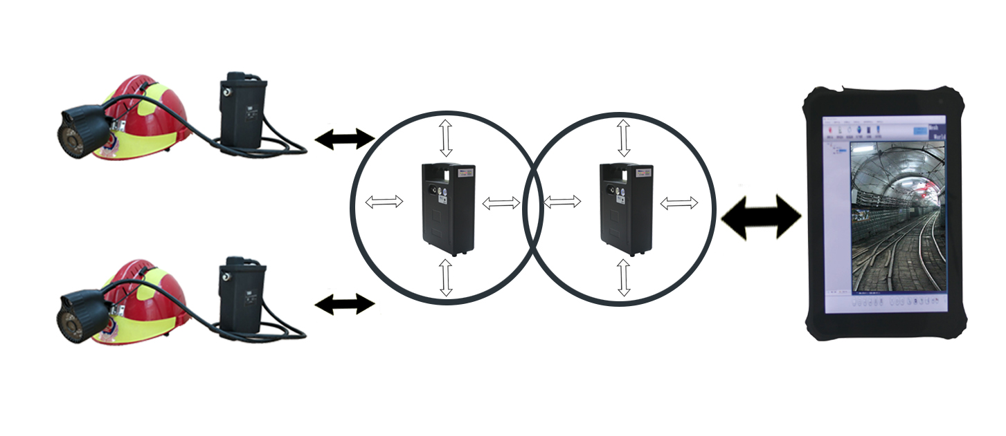 該系統(tǒng)采用無(wú)線通信網(wǎng)絡(luò)采用自組織、自愈合方式快速形成多跳鏈狀或網(wǎng)狀網(wǎng)拓?fù)浣Y(jié)構(gòu),無(wú)線通信距離不小于2000米,具有快速部署、高帶寬、低時(shí)延、可靠性強(qiáng)等特點(diǎn)。井下救援人員或工作人員,通過(guò)佩戴礦用本安型平板計(jì)算機(jī)、配套的低照度攝像頭自帶語(yǔ)音通話、無(wú)線中繼器等裝備,將現(xiàn)場(chǎng)的實(shí)時(shí)圖像、語(yǔ)音等信息實(shí)時(shí)回傳到指揮平臺(tái),調(diào)度指揮人員可以實(shí)時(shí)了解現(xiàn)場(chǎng)情況,并對(duì)現(xiàn)場(chǎng)人員進(jìn)行調(diào)度指揮。