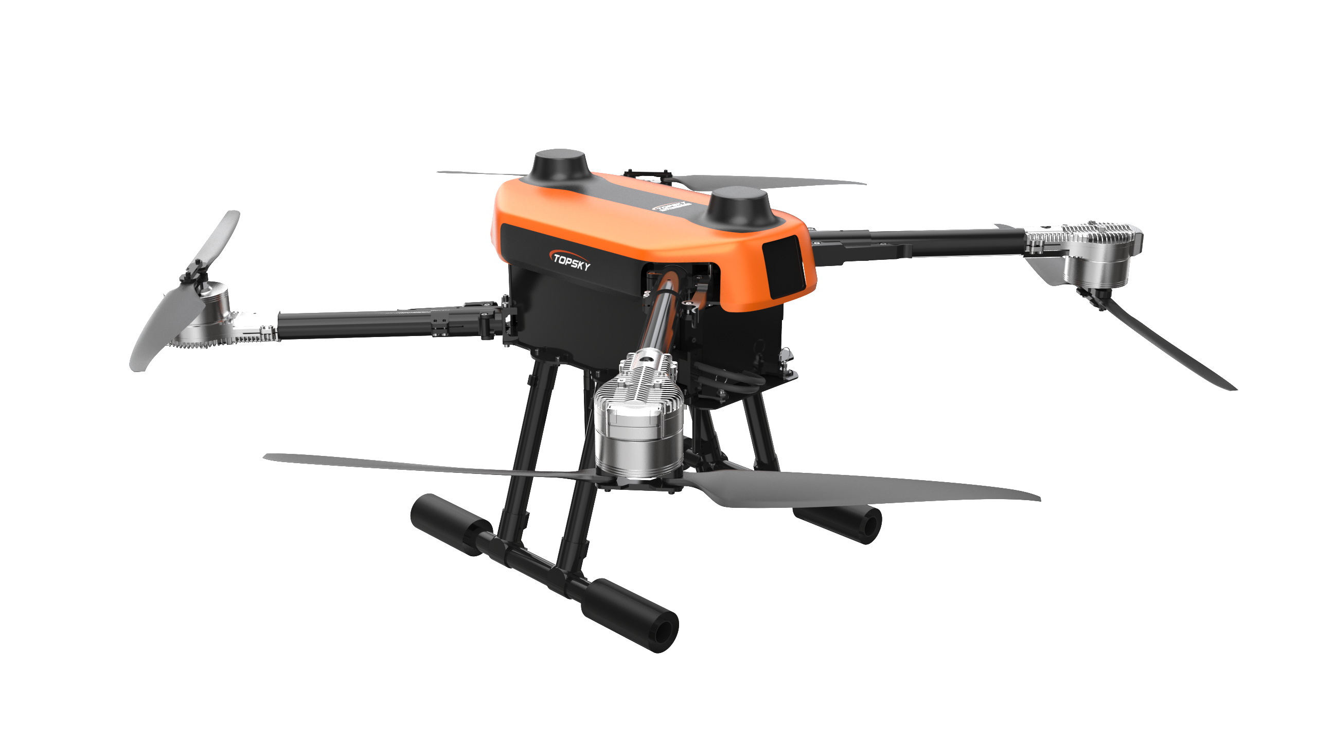 消防無人機主體為碳纖維材質(zhì),機臂可快速折疊,整機重量輕便、體積小巧,方便攜帶和快速展開。機身下方有通用載荷接口,可快速換裝不同任務(wù)載荷,通用載荷接口最大可負載5kg任務(wù)載荷,載重能力優(yōu)秀。整機空載續(xù)航大于45min,超長航時可滿足大部分應(yīng)用場。消防無人機配置有RTK和毫米波雷達,可實現(xiàn)厘米級定位精度和避障能力。