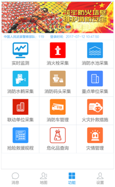 3、數(shù)據(jù)管理:消火栓采集、消防水池采集、消防水鶴采集、消防碼頭采集、重點單位采集、聯(lián)動單位采集、消防車輛管理與指揮中心同步管理,數(shù)據(jù)監(jiān)測查詢。