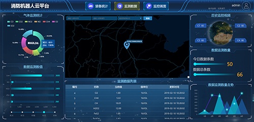 消防機(jī)器人云平臺集機(jī)器人分布、機(jī)器人統(tǒng)計(jì)、視頻、氣體、語音、控制等集成于一體,做到全局把控、機(jī)器人監(jiān)測、全生命周期綜合使用及可視化操作。當(dāng)遇到突發(fā)事件時(shí),能在線直觀的分析并高效的了解到設(shè)備實(shí)時(shí)狀態(tài)。