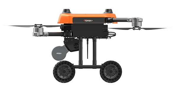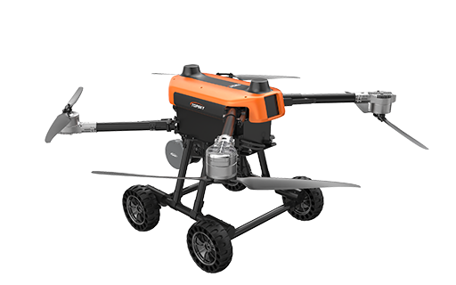 本無人機(jī)為北京凌天智能裝備集團(tuán)研發(fā)的陸空兩棲三維偵測建模無人機(jī),采用四旋翼機(jī)身設(shè)計(jì),載重大,續(xù)航長,并且機(jī)體折疊標(biāo)準(zhǔn)化負(fù)載接口。同時(shí),該無人機(jī)具備陸空兩棲功能,可以在地面行駛。
