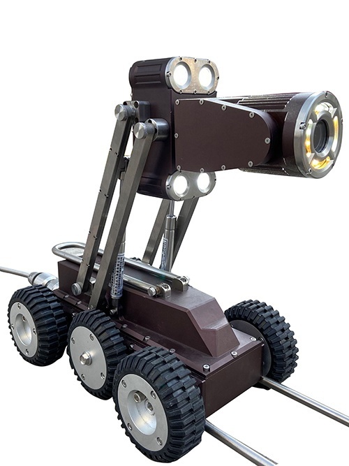 針對煤礦井下發(fā)生事故后,救援人員不能及時了解現(xiàn)場情況的問題,設(shè)計并研制了一種鉆孔救援機器人,該產(chǎn)品是由爬行器(攝像頭)、鉆孔自動(手動)盤線車、無線系統(tǒng)控制器 (電腦端)、電源適配器等部分組成,通過操作主控制機器人界面,可實現(xiàn)控制爬行器在孔內(nèi)行走,并將釆集到的救援孔內(nèi)部圖像通過線纜實時傳輸?shù)街骺刂破鬟M行實時監(jiān)視,配合判圖軟件一鍵生成檢測報告。檢測系統(tǒng)還配有專業(yè)的控制軟件,可運行在windowslO系統(tǒng)上控制本套檢測機器人。可進行圖像存儲。監(jiān)視圖像時如果發(fā)現(xiàn)人與物體,可以通過錄像或拍照記錄出來以便對其判斷、分析。在主控制器的顯示界面上,可以隨時了解爬行器的狀態(tài),包括傾角、氣壓、距離、速度、平臺高度、日期等相關(guān)信息。該裝置也可用于其他地質(zhì)鉆井探測中,基于礦山鉆孔救援探測需求,針對現(xiàn)有探測機器人信息探測范圍窄、探測距離較短、功能單一、無越障能力等問題,設(shè)計出礦山鉆孔救援探測機器人。